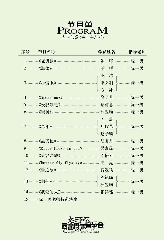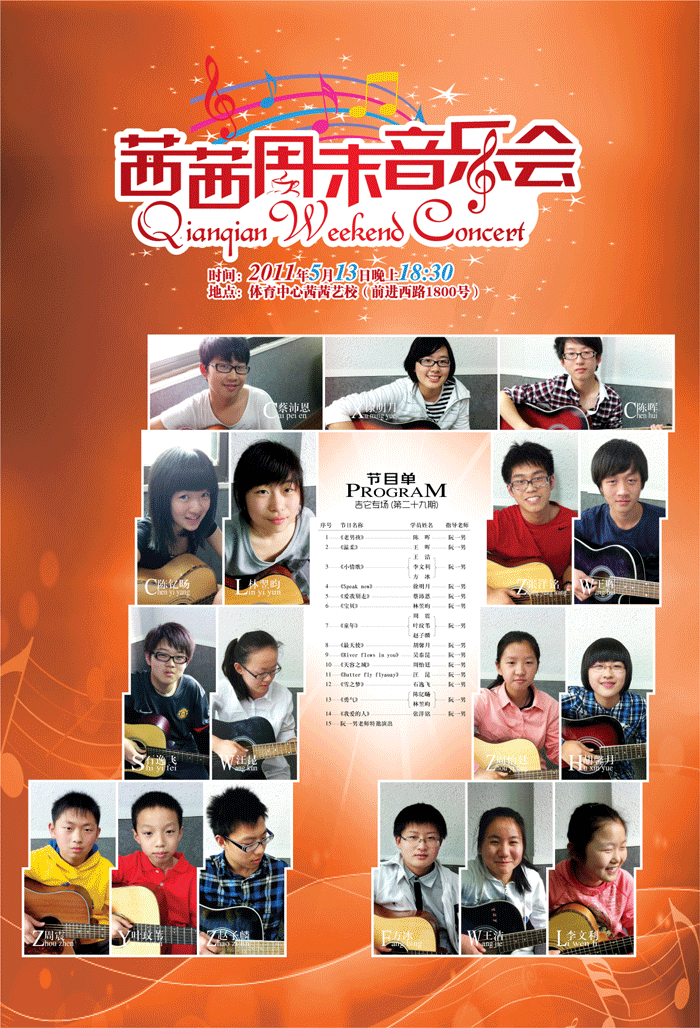 茜茜琴行二十九期周末音樂(lè )會(huì )—吉他專(zhuān)場(chǎng)于5月13日在茜茜藝校舉行?。ǜ窖莩龊螅?/h1>