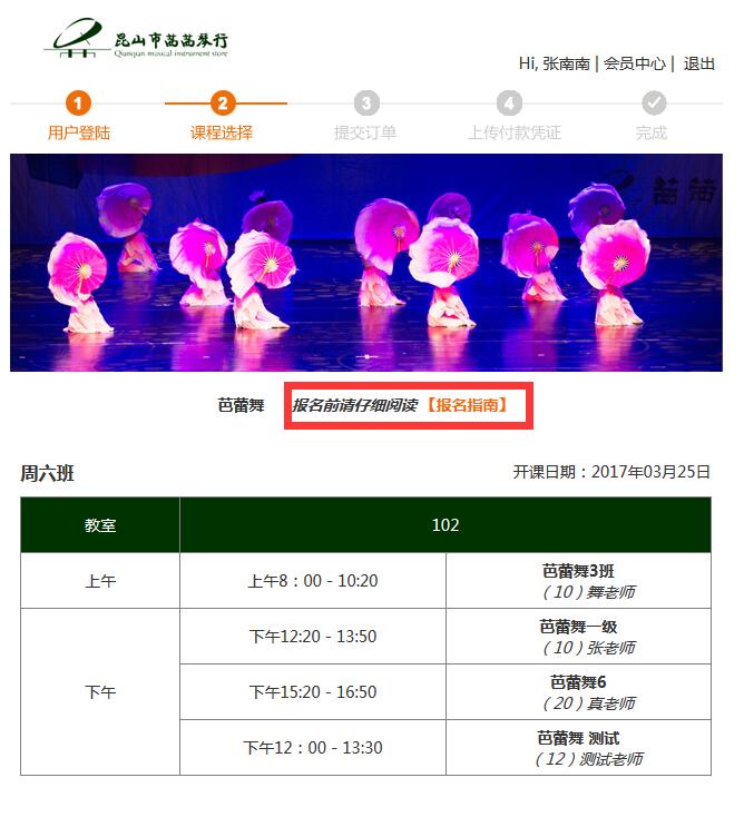 2.選擇舞蹈課程,先要選擇舞蹈種類(lèi),學(xué)校, 然后在選擇課程,如圖